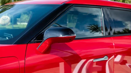 Phần trên của ốp kính chiếu hậu sơn đen bóng cũng trở thành điểm nhấn, tạo thêm sức hút cho thân xe VF 7. Tay nắm cửa thiết kế ẩn, không chỉ mang đến sự sang trọng cho mẫu ô tô điện phổ thông, mà còn tăng thêm tính khí động học.